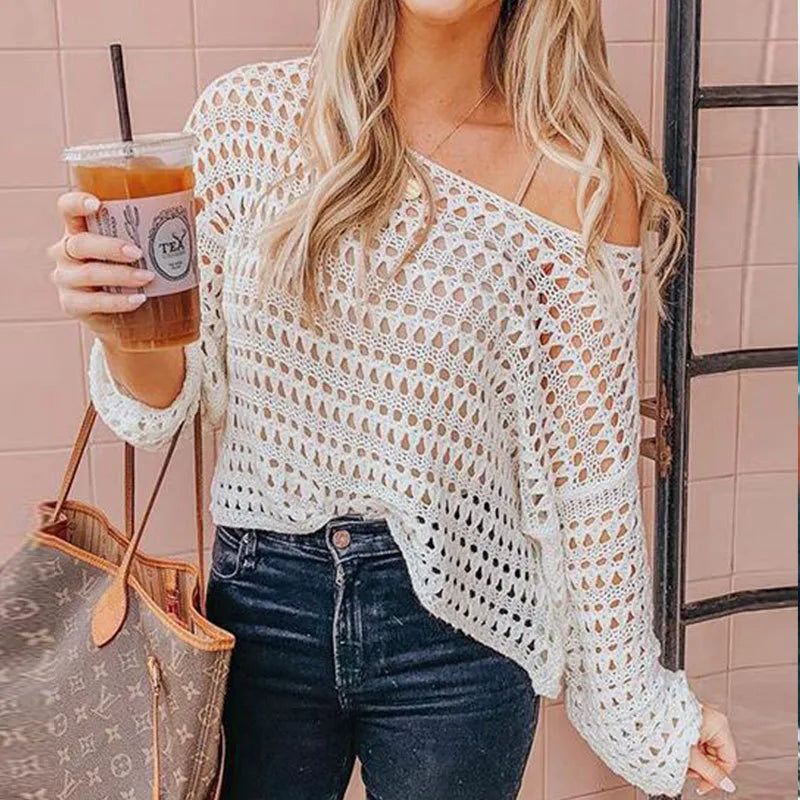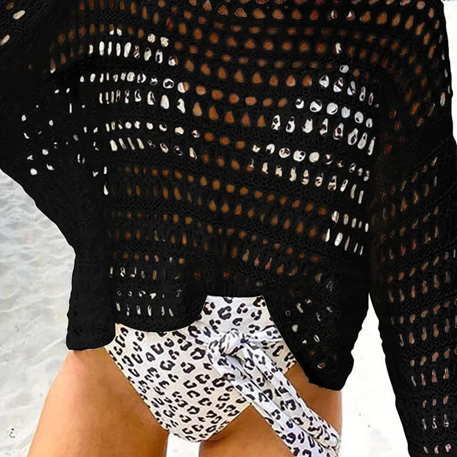 cache-maillots ajourés de couleur unie, style simple pour les vacances des femmes