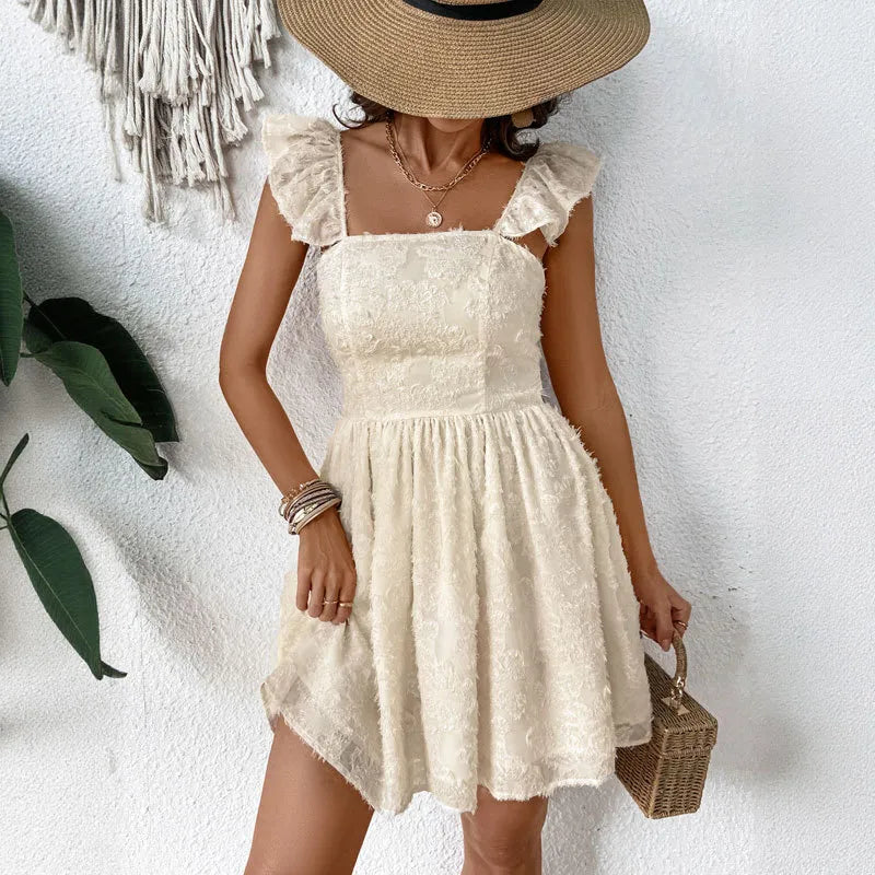 Robe sexy dos nu, couleur unie, col carré, sans manches, bretelles, pour banquet, vacances, selfie, vente en gros