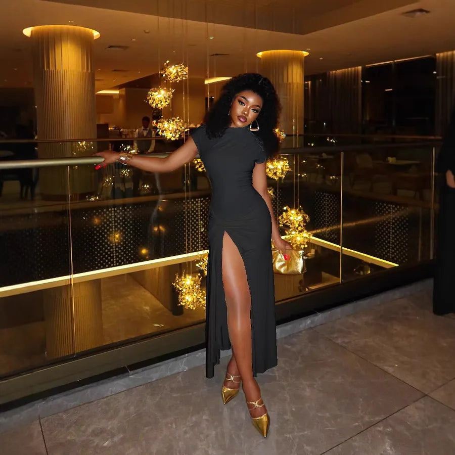 Robe fourreau à manches courtes et col oblique pour femme, couleur unie, style streetwear, vacances, thé, vente en gros