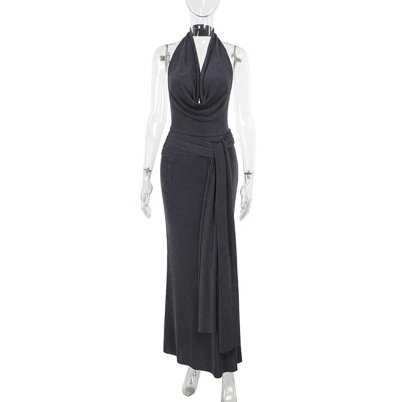 Robe fourreau pour femme, style streetwear, col licou, sans manches, couleur unie, longue, pour les vacances