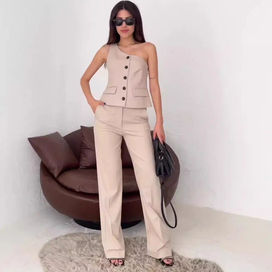 ensembles de pantalons décontractés à poches en polyester de couleur unie pour femmes