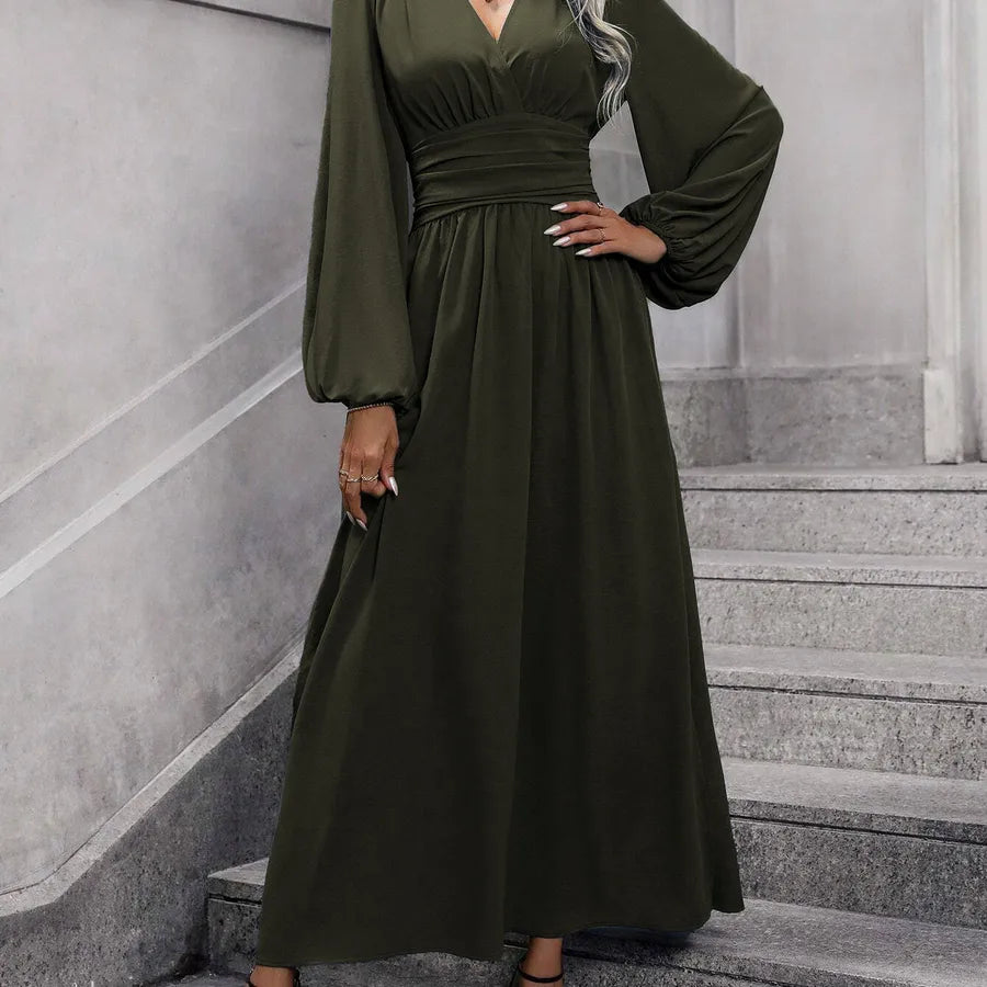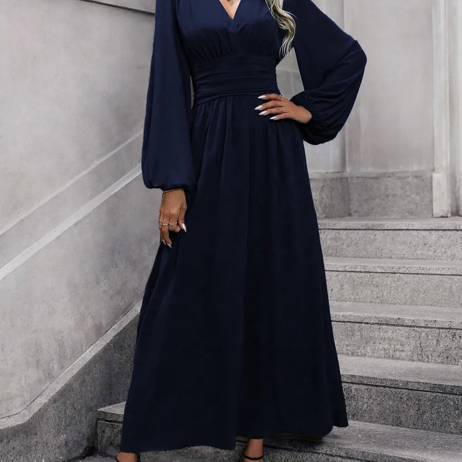 Robe longue fendue à manches lanternes pour femme, nouvelle collection automne-hiver