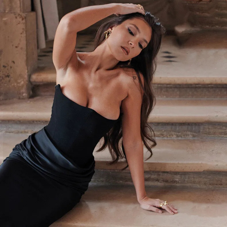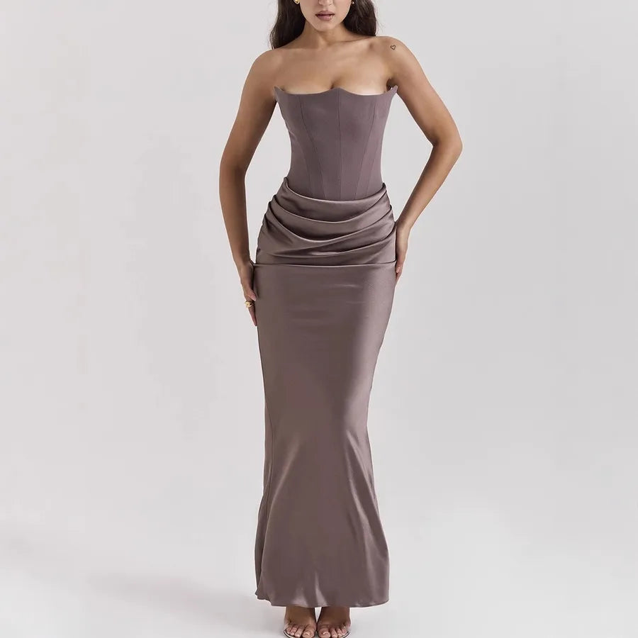 Robe de soirée élégante dos nu, coupe ajustée, style européen, haut tube, sexy, nouvelle collection printemps